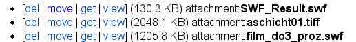 To refer to attachments on a page, use attachment:filename, as shown below in the list of files. Do NOT use the URL of the [get] link, since this is subject to change and can break easily.